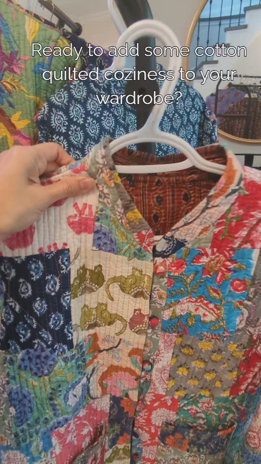 Premium upcycled cotton quilting with reversible design. Wear it 4 different ways. Ethically produced in small batches with organic cotton filling.